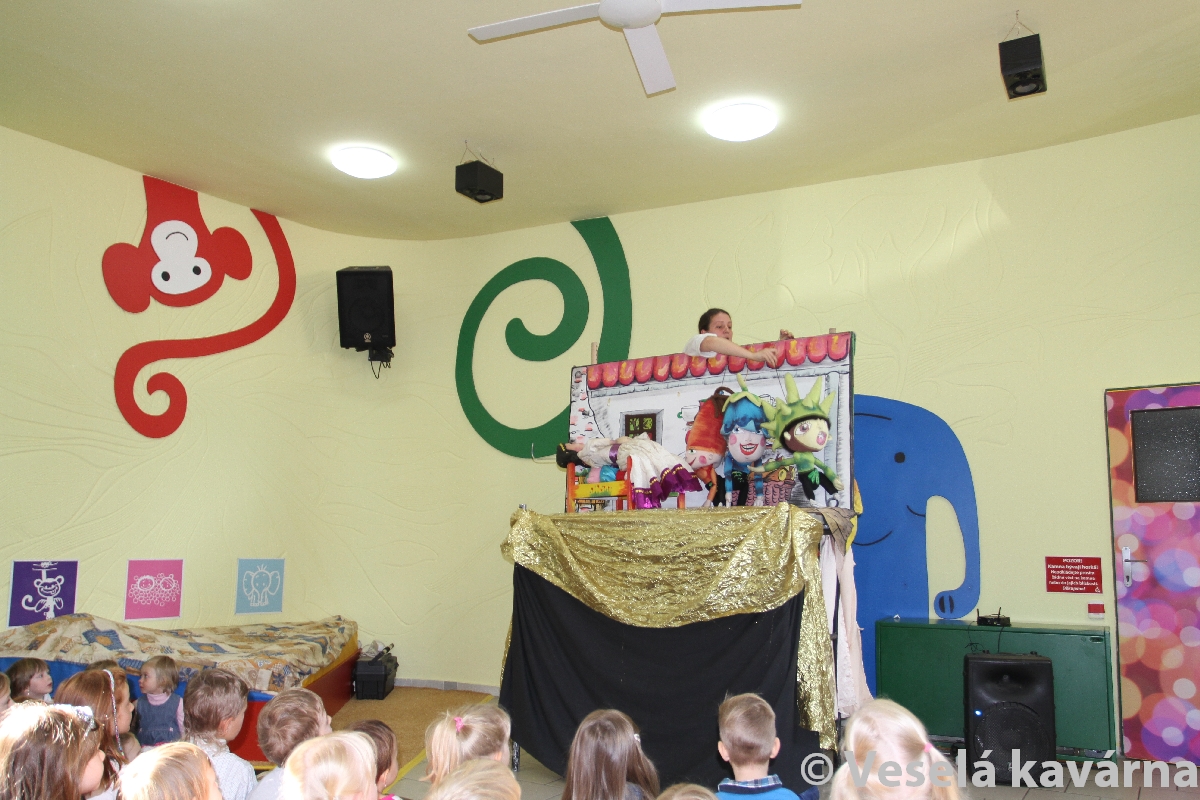 Fotografie z představení pro děti Sněhurka a sedm trpaslíků. Klasická pohádka s netradičně zpracovanými a pojmenovanými trpaslíky. Poezii dřevěných vyřezávaných loutek doplní legrace s roztodivnými barevnými trpaslíky. Zachováváme klasický příběh obohacený o překvapení pro děti a pobavení pro dospěláky. Divadlo Koráb
