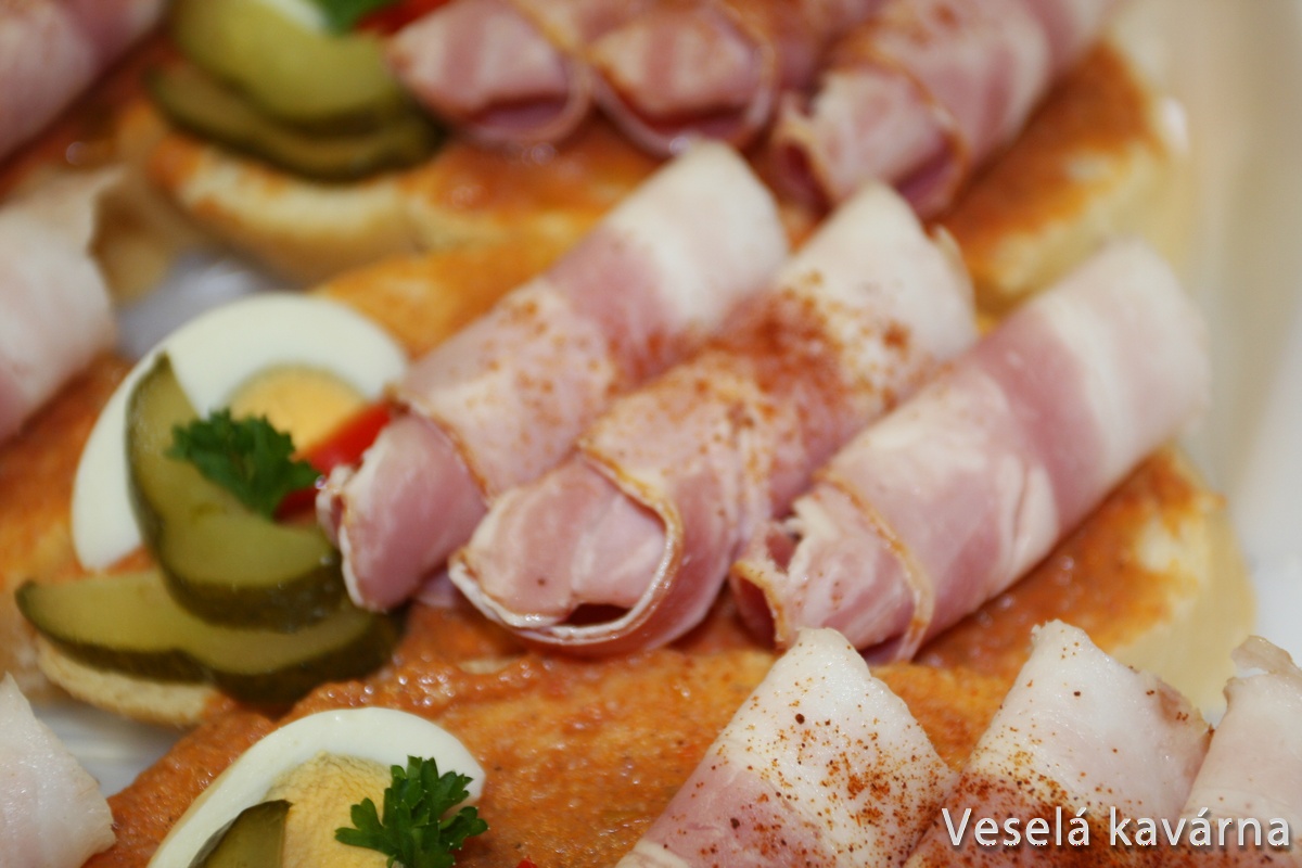 Chlebíčky lze objednat: Česnekový, Lahůdkový, LUX, Myslivecké vejce, Ruské vejce, Sardelový, S debrecínkou, S nivou, Speciál, S poličanem, S rajčetem, Super LUX, Sýrový, Šunkový.